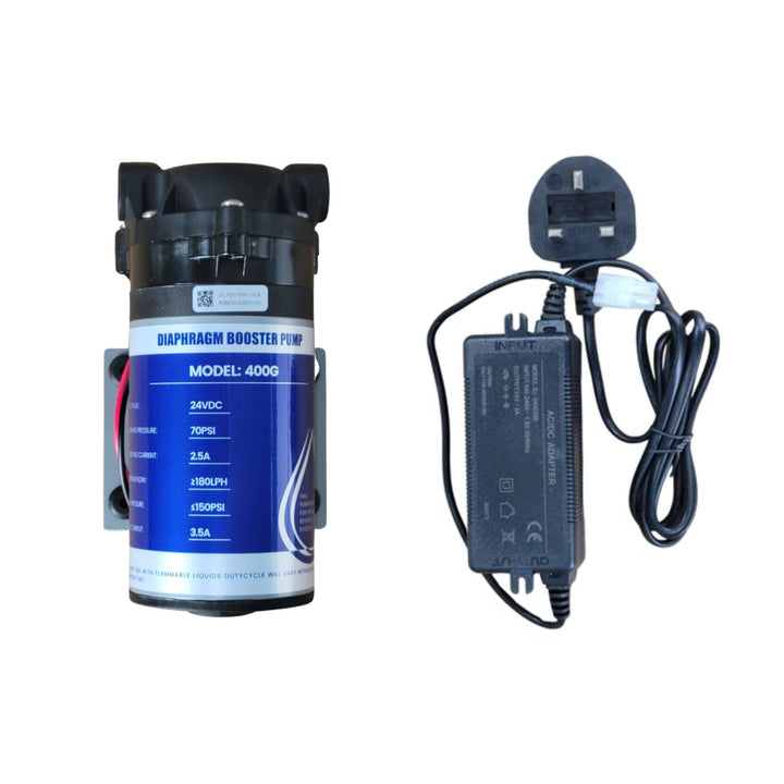 The 400-GPD Pump is a reliable and efficient solution for residential water filtration systems, providing consistent water pressure and flow for superior filtration performance. With its low power consumption, high flow rate, and minimal noise output, it's an ideal choice for enhancing the efficiency of your RO system.