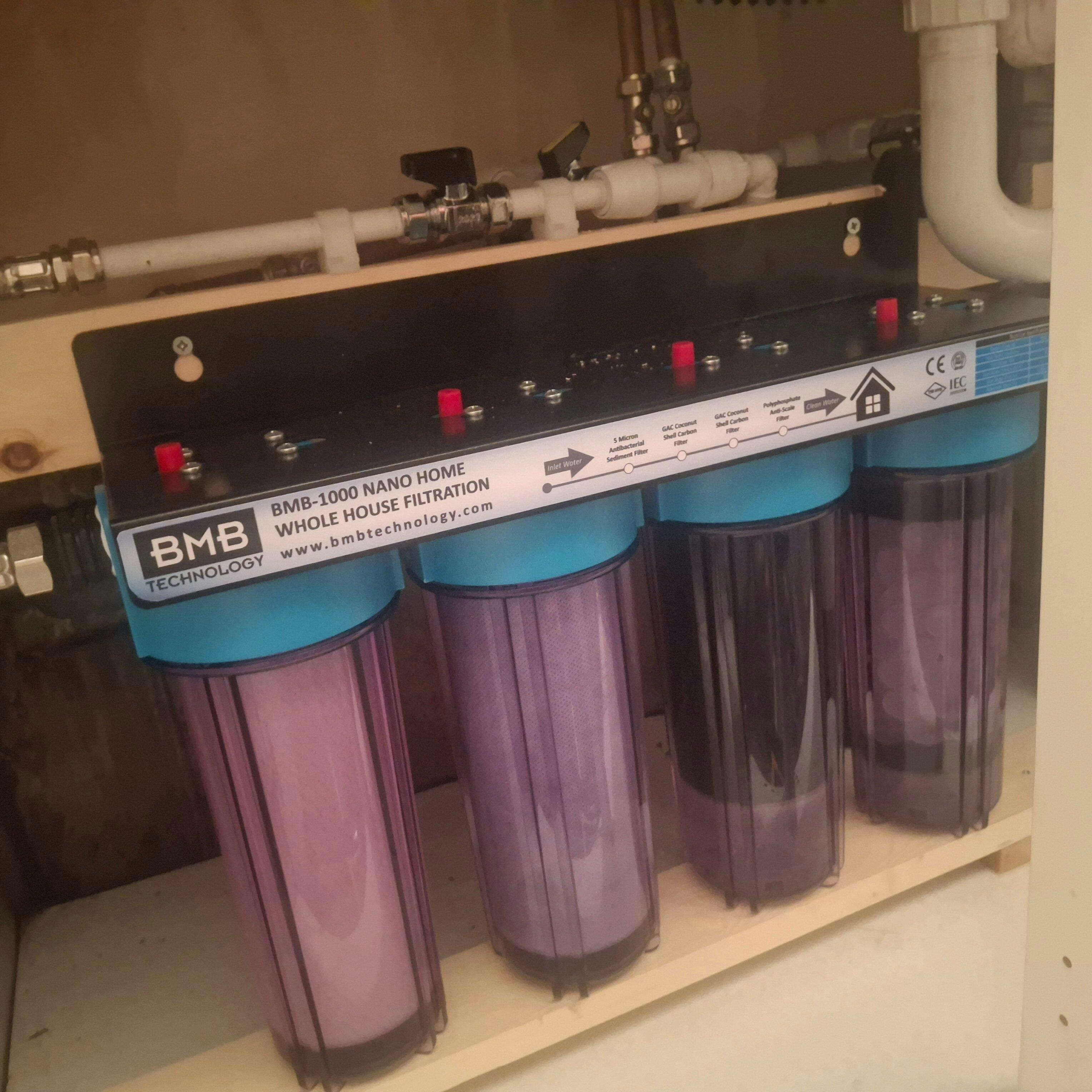 The BMB-1000 Nano Home by BMB Technology is a state of the art point of entry (POE) water filtration system that is powered by nanotechnology. The 4 filter system utilises high quality filters and ingenuitive processes to remove or reduce thousands of water contaminants without the need for electricity, waste water or storage tank.