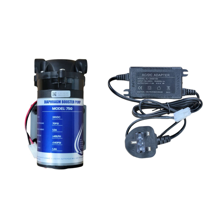 The 50-75-GPD Pump is a reliable and efficient solution for residential water filtration systems, providing consistent water pressure and flow for superior filtration performance. With its low power consumption, high flow rate, and minimal noise output, it's an ideal choice for enhancing the efficiency of your RO system.