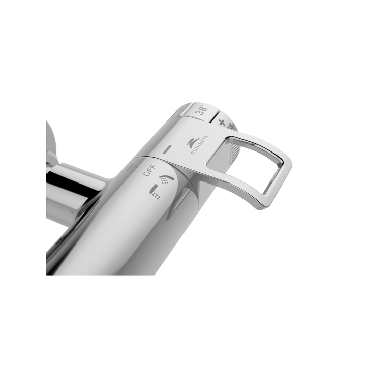 The thermostatic mixer maintains your chosen temperature with absolute precision - no unexpected changes, no unpleasant surprises. A 38 °C safety lock prevents scalding, while ergonomically shaped handles ensure ease of use for both children and older users.